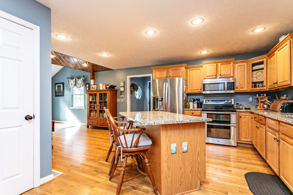 Lake house with a view! Come find this stunning lake house nestled in the serene woods of central Kentucky and backing right up to Beaver Lake! Then be ready to enjoy a home that encapsulates a charming nautical décor while capturing that warm homey feel to make the perfect lakefront property. In the heart of the home is a splendid kitchen that like much of the home is laid with a gleaming hardwood floor. The kitchen is furnished with an assortment of glowing cabinetry (including a discreet pantry closet) and equipped with stainless-steel appliances (refrigerator, dishwasher, stove, and microwave) that shine under the array of recessed lights. The counters are topped with a stylish granite and centered in the kitchen is a sleek island breakfast bar. Flowing from the kitchen is an intimate dining area with a trio of windows offering an incredible view of the lake. Snuggled in its own area of the home is where you will find a cozy den that is the ideal spot to relax and unwind. This room is highlighted by an adorable fireplace that accentuates the cozy ambiance while the cathedral ceiling and octagon window adds a charming touch plus a duo of sun-enticing windows to filter soothing light into the room and providing another surreal view of the lake… and don’t forget about the convenient access to the wrap-around deck! The first-floor features a spacious bedroom showcasing more of that gorgeous hardwood and accompanied by a full bathroom sporting a beautiful granite topped vanity. Rounding out the first-floor is a sizable utility room with a handy sink and a nifty laundry station offering built-in cabinetry & counter space. The upstairs greets you with a lovable family room that is a unique feature to the home. This area has a pair of glowing skylights, large storage closets, and is a fun spot for the whole family. The upstairs also hosts another generously sized bedroom with a nice walk-in closet and ensuite bathroom. This bathroom has a fashionable dual vanity and is another adorable setup. The tour continues to the basement where there is more space to host and entertain as the basement has a delightful rec room, full bathroom with a walk-in shower, and another bedroom. Outside… you will love the privacy and sense of seclusion from all of the mature shade trees yet you are only about an hour drive from either Louisville or Lexington! Then get ready to be fully immersed in the lake life as Beaver Lake (known for its great fishing & kayaking) is literally in your backyard! You even have your very own private dock complete with a boat lift… and have your choice between the covered porch or wrap-around deck to take in those panoramic views of the woods and lake. Speaking of which… the woods are teeming with wildlife that will stop by for a friendly visit. (Look at that picture of all the deer in the front yard!) There is also a fenced-in area in the front yard that is great for pets. But wait… there’s more! The home also comes with a 36’ X 24’ detached garage large enough to store vehicles with room left over for those tinkering jobs… not to mention the set of storage buildings to give you spots to store yard equipment and lake accessories. Whether you are looking for an investment property, seasonal home, or permanent residence… this is the place for you and call CHARLES LANCASTER JR. to make those dreams come true!