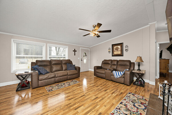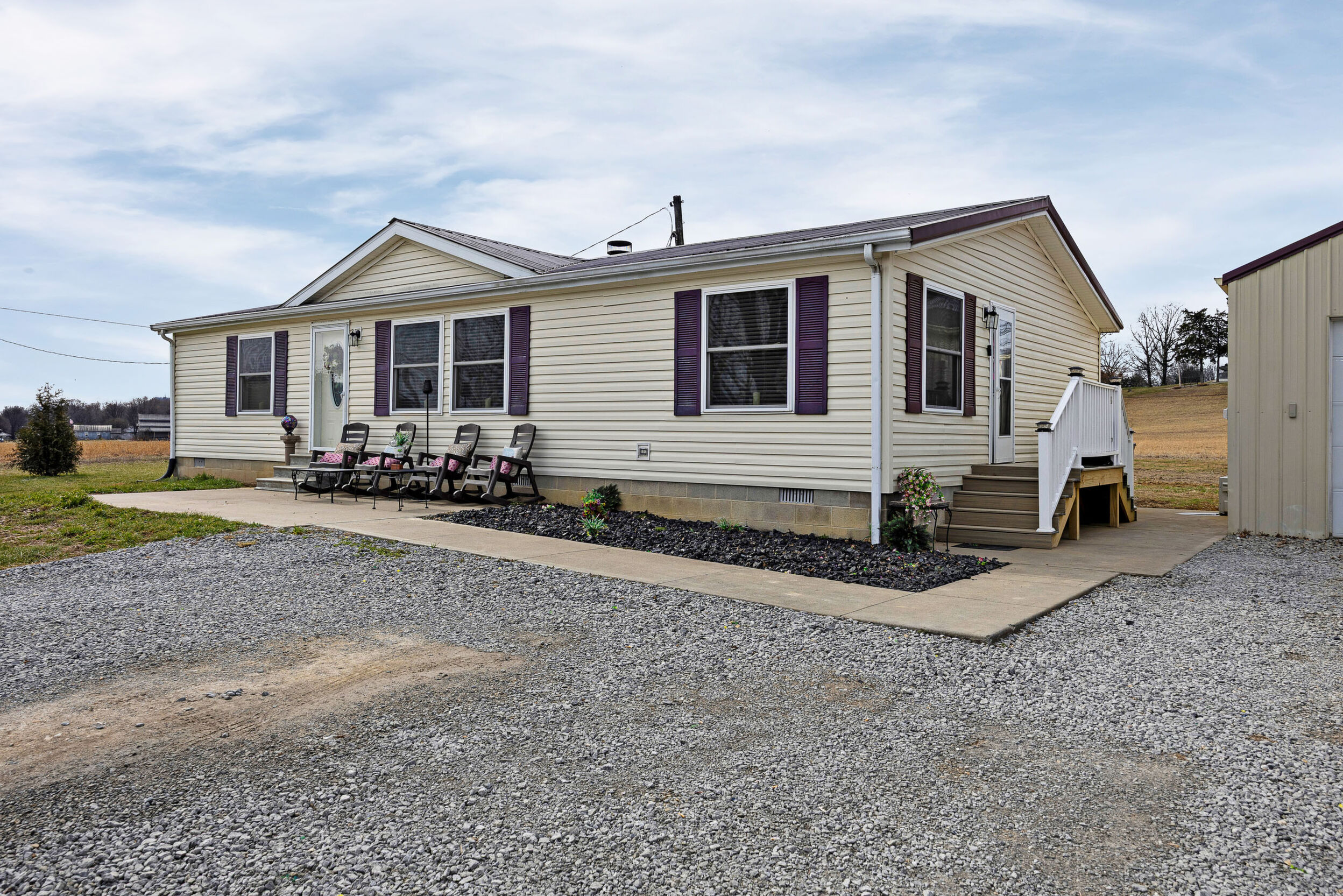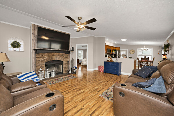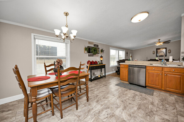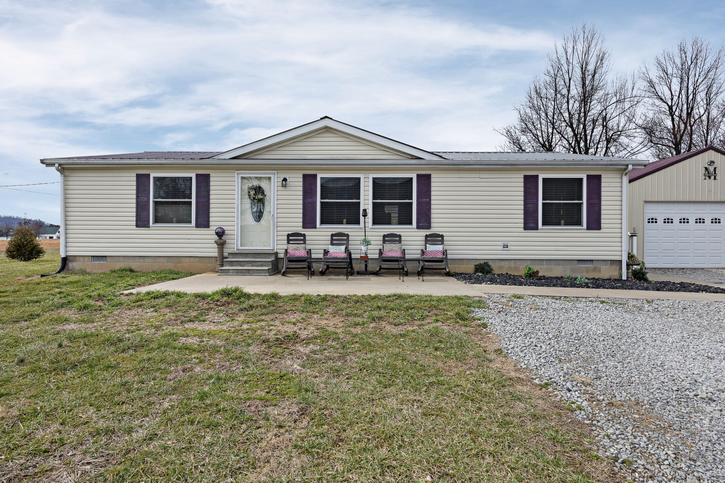 Here’s a 2002 Clayton Brookdale sitting at its original location, is set on a permanent foundation, and has been converted to real estate meaning it will qualify for a variety of loan programs such as FHA, VA, and USDA! And that’s not even the best part… This place has been extensively renovated to create a like-new house you will be proud to call home! The tour starts off in the inviting living room laid with a sleek woodgrain floor and highlighted by a cozy wood burning fireplace caressed by a delightfully rustic hearth and decorative mantle making it the perfect spot to put the big-screen tv. Flowing from the living room is a splendid kitchen souped-up with matching LG stainless-steel appliances and a lovely assortment of beautiful cabinetry. The stylish backsplash ties all of these first-class finishes together while the intimate dining area is great for enjoying meals with the family and rounding out this area is a handy utility room. Nestled just off the living room is the spacious primary bedroom complete with a large walk-in closet and ensuite bath. This bathroom features a fashionable dual vanity, a relaxing soaking tub, and a refreshing walk-in shower. Down the hall are 2 more generously sized bedrooms accompanied by another fabulous full bath. Then make your way to the front patio whenever you are wanting to just sit back and relax, but when you want to get more active… the detached 2-car garage has you covered! This climate-controlled garage is wired with electric and is an awesome set up for a mancave or those tinkering jobs! Not to mention the home sits on a nice 0.47-acre (+/-) spread of land that includes a vast backyard ideal for kids and pets to play plus a serviceable 32’ X 12’ storage building. Again… it has been thoroughly renovated with top-of-the-line finishes from the flooring to the light fixtures to make it move-in ready… So call JESSI VAUGHN to call this place home today!