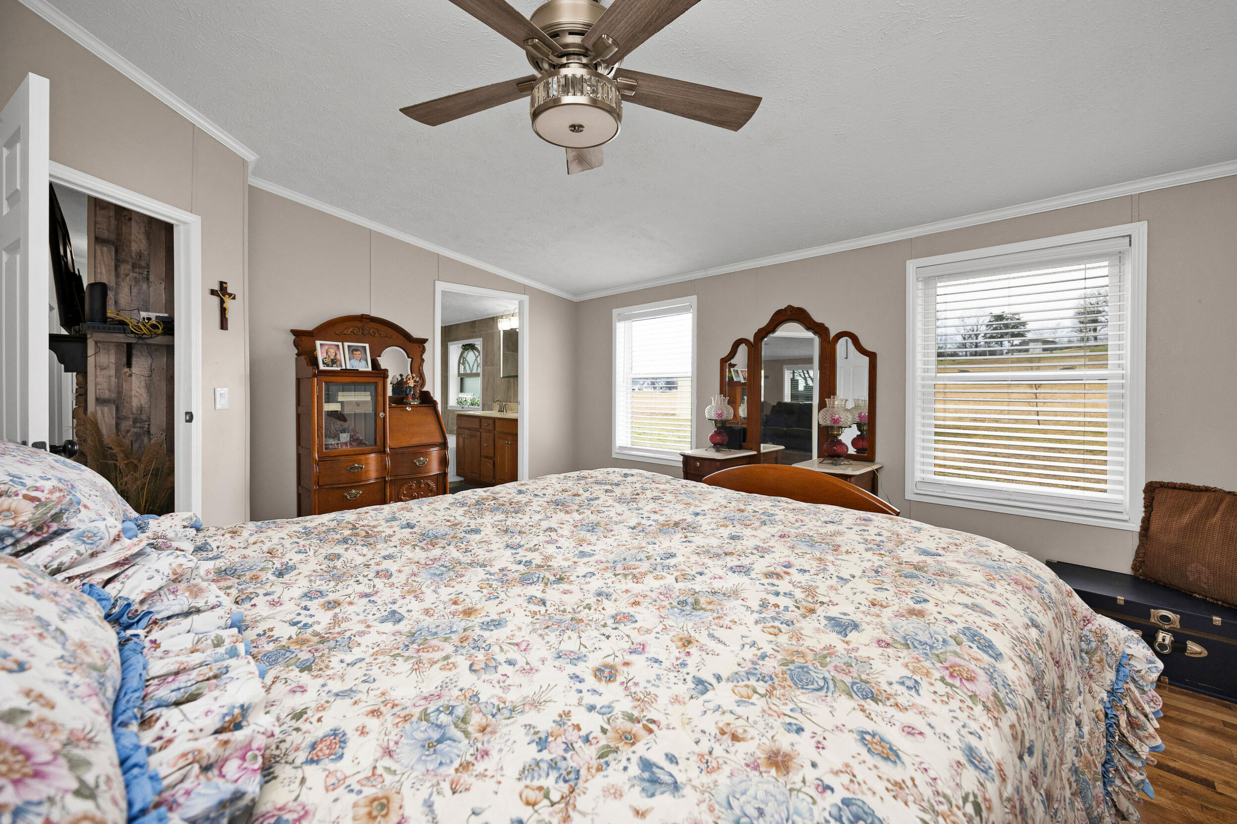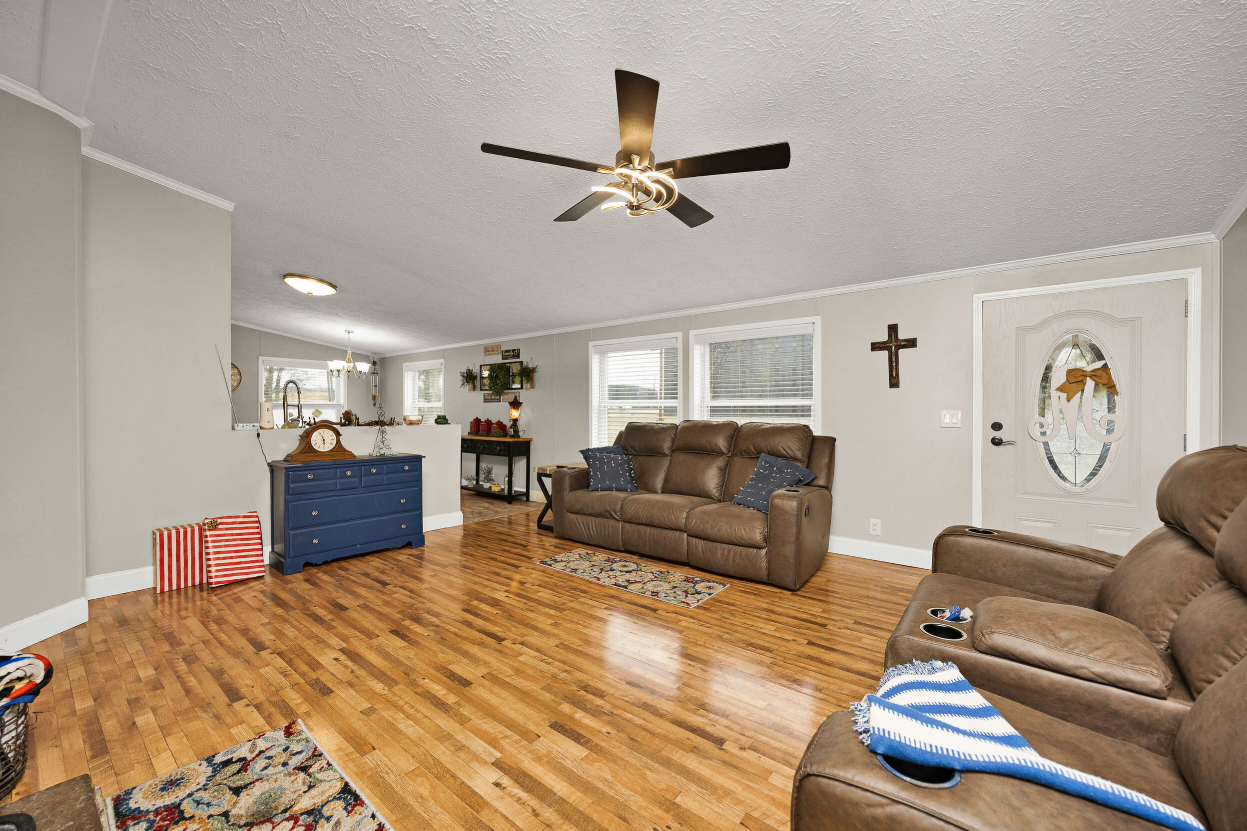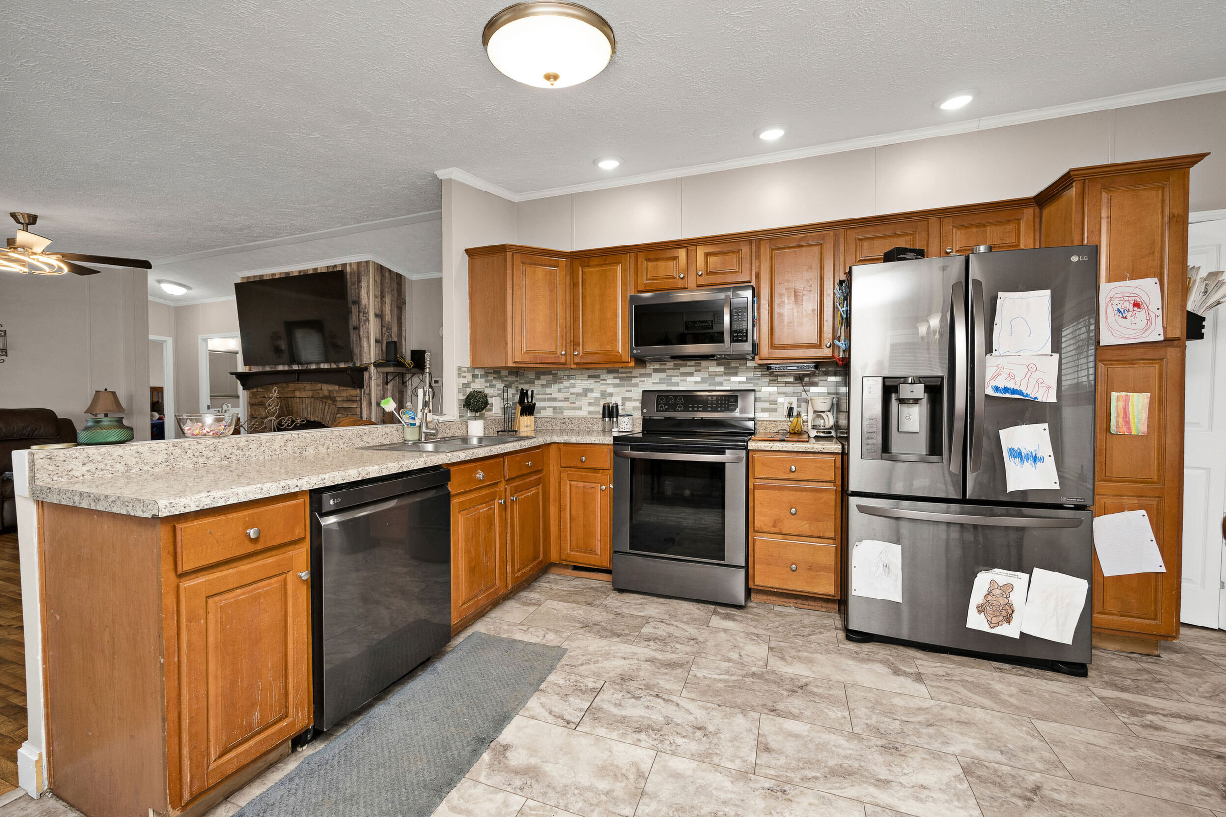 Here’s a 2002 Clayton Brookdale sitting at its original location, is set on a permanent foundation, and has been converted to real estate meaning it will qualify for a variety of loan programs such as FHA, VA, and USDA! And that’s not even the best part… This place has been extensively renovated to create a like-new house you will be proud to call home! The tour starts off in the inviting living room laid with a sleek woodgrain floor and highlighted by a cozy wood burning fireplace caressed by a delightfully rustic hearth and decorative mantle making it the perfect spot to put the big-screen tv. Flowing from the living room is a splendid kitchen souped-up with matching LG stainless-steel appliances and a lovely assortment of beautiful cabinetry. The stylish backsplash ties all of these first-class finishes together while the intimate dining area is great for enjoying meals with the family and rounding out this area is a handy utility room. Nestled just off the living room is the spacious primary bedroom complete with a large walk-in closet and ensuite bath. This bathroom features a fashionable dual vanity, a relaxing soaking tub, and a refreshing walk-in shower. Down the hall are 2 more generously sized bedrooms accompanied by another fabulous full bath. Then make your way to the front patio whenever you are wanting to just sit back and relax, but when you want to get more active… the detached 2-car garage has you covered! This climate-controlled garage is wired with electric and is an awesome set up for a mancave or those tinkering jobs! Not to mention the home sits on a nice 0.47-acre (+/-) spread of land that includes a vast backyard ideal for kids and pets to play plus a serviceable 32’ X 12’ storage building. Again… it has been thoroughly renovated with top-of-the-line finishes from the flooring to the light fixtures to make it move-in ready… So call JESSI VAUGHN to call this place home today!