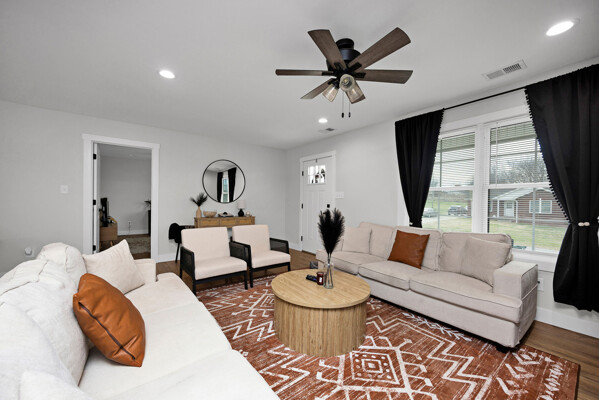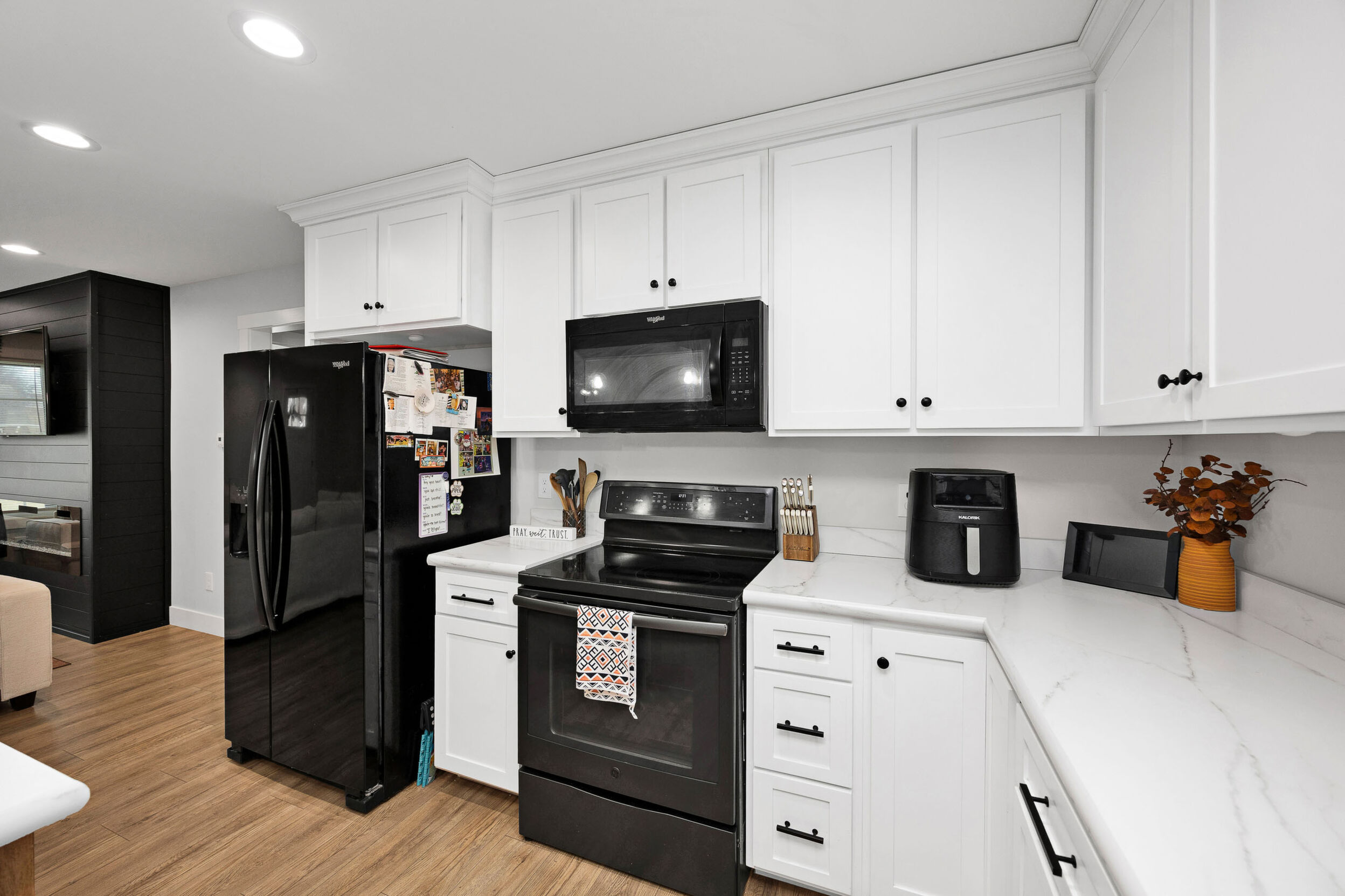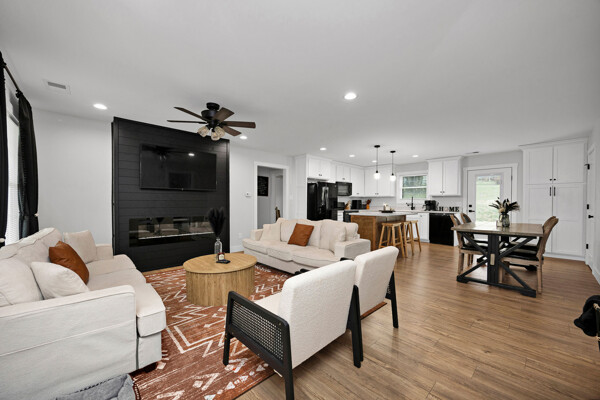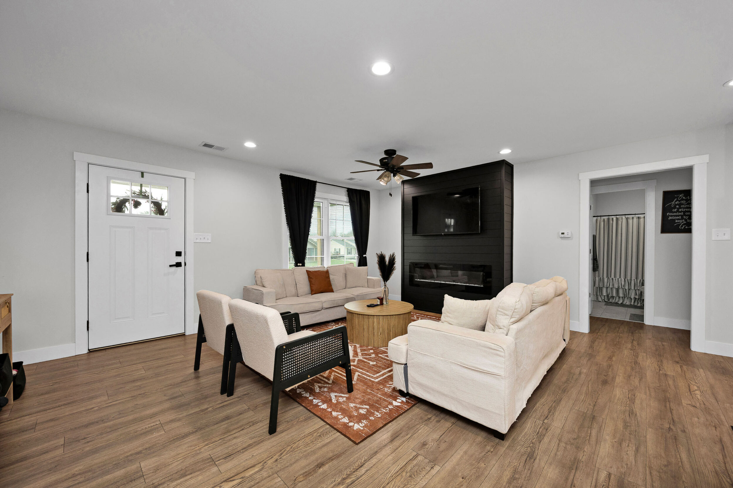 Here is an absolutely adorable home that showcases first-class style and charm while also fostering that warm homey feel. Come on in to be welcomed into a delightful open concept starting with a cozy living area. This spot is a great area to relax or entertain as it is highlighted by a sumptuous fire insert caressed with a contrasting ship lapped hearth for a fabulous pop of color! Then follow that exquisite woodgrain LVP flooring to the kitchen that is centered by a lovely island shining under a pair of charming pendant lights. The kitchen is also souped-up with a magnificent assortment of elegant cabinetry (including a handy cupboard) equipped with black handles for another subtle yet tasteful pop! Tying all these first-class finishes together are the luxurious marble print countertops while the array of recessed lights makes the kitchen glow and rounding out the kitchen is a sizable yet intimate dining area. Tucked away next to the kitchen is a discreet laundry room offering great utility and a good amount of storage space. Then nestled on its own wing of the home is a spacious primary suite featuring a generous walk-in closet and a lavish ensuite bath. This bathroom is highlighted by a stylish dual vanity, an opulent marble print snap-tile floor, and a nice tub/shower combo. Making our way to the other side of the home is where you will find 2 more adorable bedrooms sporting more of that sleek LVP flooring and furnished with large closets. Accompanying these bedrooms is another top-notch bathroom enhanced by a fashionable vanity and matching finishes as the primary suite. Outside… you will love drifting into relaxation under the covered front porch or entertaining with a grill and chill session on the quaint rear patio. The home is move-in ready and the only question is… Are you ready to move? Call CHASE LANCASTER to get those moving plans started today!