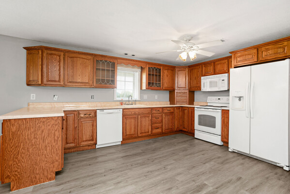 Come get that fresh country air with this spacious home that is nestled on a 5.79-acre (+/-) spread of land out in the scenic countryside of central Marion County. The tour begins in the airy living room laid with a soothing luxury vinyl plank floor brightened by a trio of sun-enticing windows and enhanced with a pair of modern ceiling fans. Flowing from the living room is an open kitchen equipped with a tasteful assortment of hearty cabinetry mixed with decorative accents. The laminate counters are topped with a stylish design while the cute breakfast nook gives you a quaint spot to enjoy your morning coffee as the duo of windows provide a gorgeous view of a lake. Conveniently connected to the kitchen is a large dining room perfect for hosting those big holiday meals or having intimate dinners with the family. Then you have a sizable laundry room (the washer & dryer stay) plus a bonus room furnished with a ½ bath making it a great spot to be used as an office or additional bedroom. The first-floor features a nice primary bedroom complete with an ensuite bath showcasing an enormous walk-in shower. And rounding out the first-floor is the attached garage souped-up with loads of counter and cabinet space to give you a fantastic area for those tinkering jobs plus there is an additional room located in the garage to give you a bonus workshop area. The tour continues to the upstairs that opens up to a lovely landing area. The upstairs is furnished with lots of closet space and hosts 4 generously sized bedrooms all laid with plush carpet and one being setup perfectly to be used as a playroom with its row of radiant windows and elongated design. Accompanying these bedrooms is another full bath highlighted by a sleek tub/shower combo. Outside you will love taking in those stunning views right from the covered porch that spans across the home and looks out to the neighbor’s lake and endless acres of gentle rolling countryside. The driveway is lined with mature trees for that stately look and don’t forget about all that acreage at your disposal. Which sitting on this beautiful property is a 40’ X 30’ detached garage with a concrete floor, overhead lights, and workbenches. Then there is another 25’ X 20’ garage that is just a smaller version of the 40’ X 30’ garage plus you have an 18’ X 14’ storage shed! To the rear of the property is a vast field that is fenced-in and supplemented with a 24’ X 24’ barn making it ideal for horses and other livestock. This is one of those properties you need to see in person to truly appreciate how amazing it really is and call MIKE SPALDING to see it in person today!
