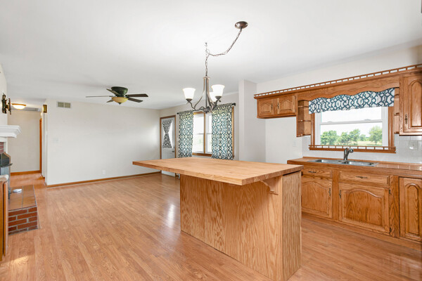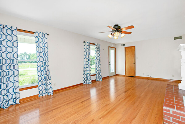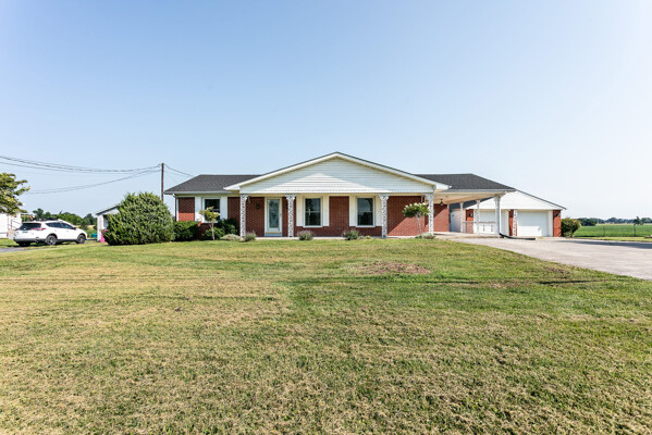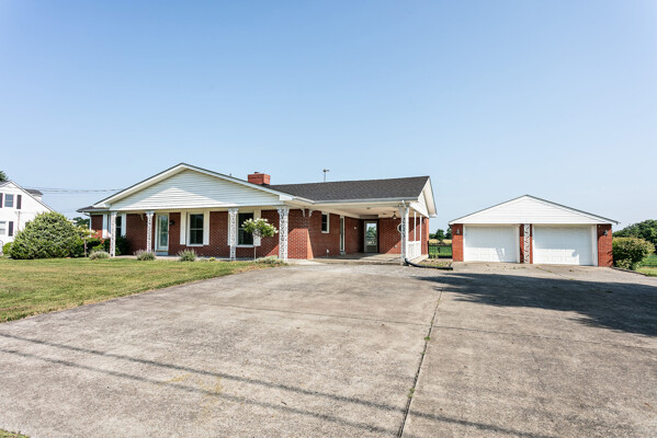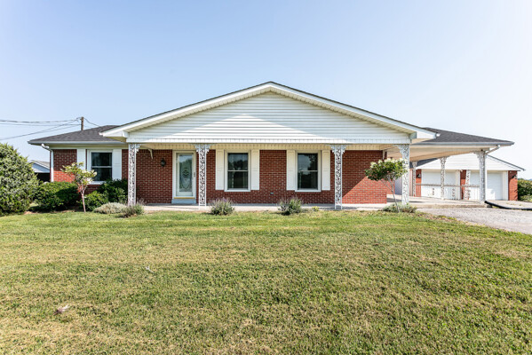 Conveniently located on Highway 52 just 2 minutes from West Marion Elementary School is where you will find this well-kept brick ranch ready to be called your home! The tour starts off in the spacious yet cozy living room highlighted with a gorgeous fireplace caressed by a robust brick hearth and decorative mantle while the duo of sun-enticing windows shine on the glowing hardwood floor. Flowing from the living room is an open kitchen just waiting for your personalized touch! This is the heart of the home as the placement of the second fireplace gives you the options of having an intimate dining area or a cozy den making it ideal to gather with family and friends as those homemade meals are being prepared. The kitchen is equipped with a variety of hearty cabinetry accompanied by a large island providing additional counter space and seating. Connecting to the kitchen is a sizable utility room furnished with more cabinetry and counterspace that doubles as a good crafting area. Nestled on its own wing of the home is where you will find 2 generously sized bedrooms showcasing more of that beautiful hardwood then in between these bedrooms is a cute bathroom featuring a charming vanity and lovely hexagonal tile floor. When it’s time to just sit back and relax… take your choice between the covered front porch or the rear patio that offers peaceful views of some of the most beautiful farmland around… not to mention the carport that could also be used as a covered patio! The tour continues to the 24’ X 30’ detached 2-car garage that is wired with electric and is perfect for a mancave or spot for your tinkering jobs. All that is left is to call MIKE SPALDING for all the details on your new home today!