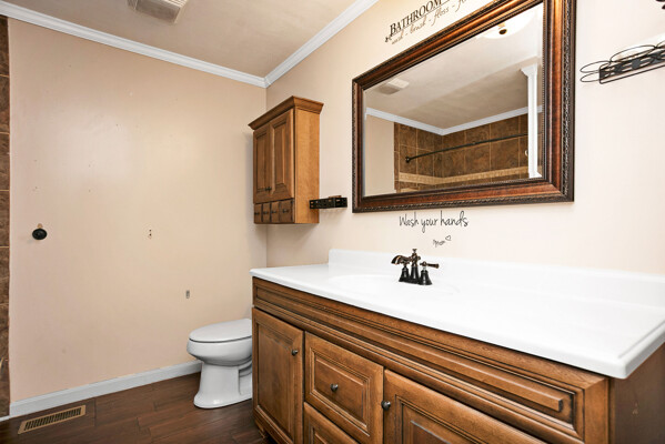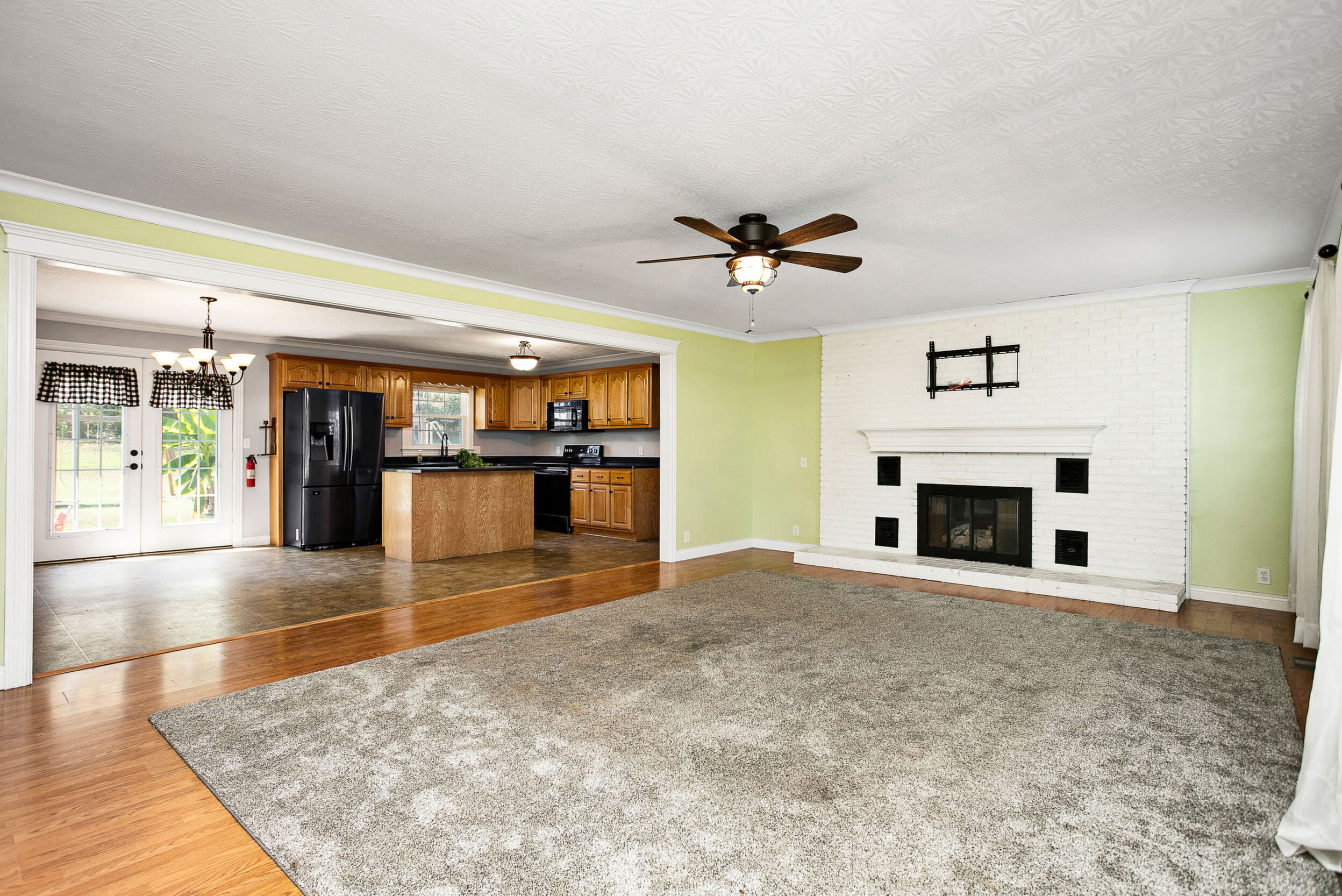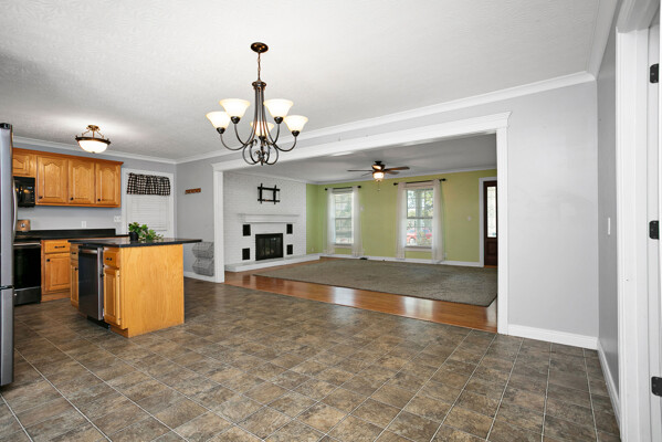 Here is a wonderful brick ranch nestled on the quiet street of Cambron Lane and ready to be enjoyed by the whole family. The tour begins in the spacious living room that is perfect for gathering comfortably with its airy layout. The living room features a duo of sun-enticing windows that shine on the beautiful woodgrain floor. Then also highlighted in the living room is a gas-log fireplace fortified by an impressive brick hearth that is painted white and complemented by a decorative mantle to enhance the cozy ambiance of the room while the robust crown molding adds an elevated touch! Flowing from the living room is a lovely kitchen where you will find more of that classy crown molding. The kitchen is equipped with sleek, black countertops that pair brilliantly with the generous assortment of hearty cabinetry. Centered in the kitchen is an adorable island supplementing cabinet/counter space and rounding out the kitchen is an intimate dining area. Connecting to the kitchen is a conveniently located laundry room offering handy storage space and a full bath that has a nice walk-in shower. Situated on its own wing of the home are 3 large bedrooms including the primary which is furnished with an awesome walk-in closet complete with splendid built-ins. Accompanying these bedrooms is another full bath featuring a smooth floating tile floor, a stylish vanity, and tub/shower combo caressed by ornate tile. Then don’t forget about the attached garage that also houses a workshop to give you a great spot for those tinkering jobs. Making our way outside… you’ll love being able to swing under the covered front porch as you watch the days go by or being able entertain on the rear patio. Speaking of which… the entertainment is just getting started as you also have an above-ground pool coupled with a sizable sundeck. Not to mention… the home sits on a generous 1.10-acre (+/-) lot to offer plenty of room for kids and pets to play… plus the swing set stays meaning even more fun for the kiddos! Call TREY ABELL to take a stroll down Cambron Lane.