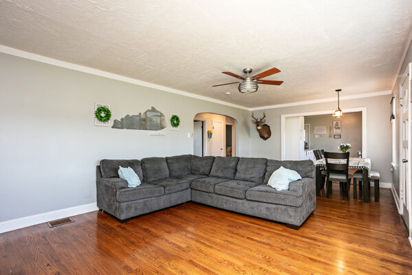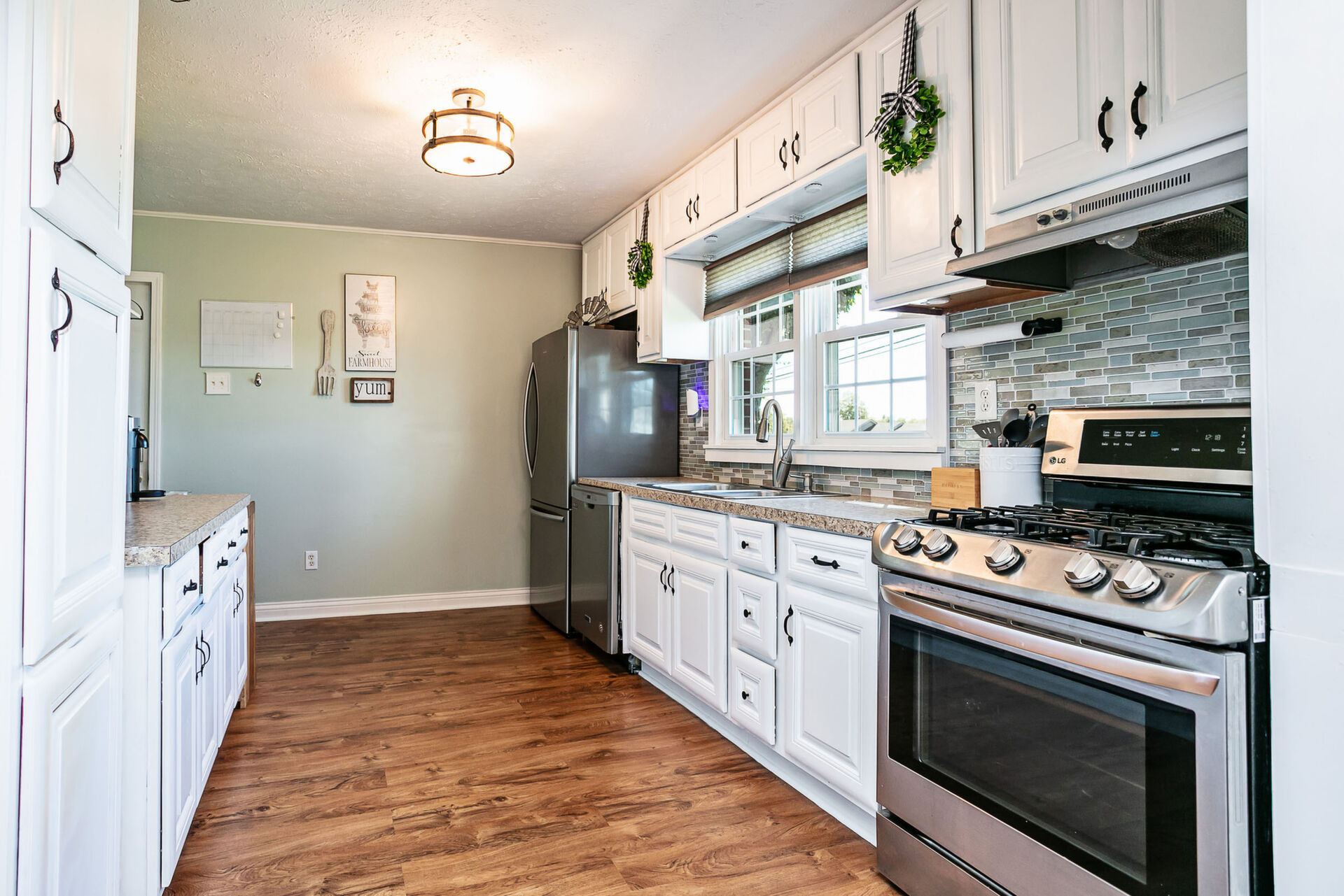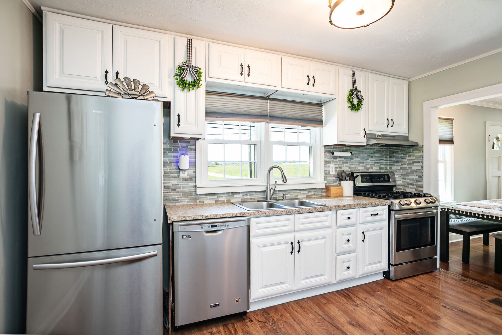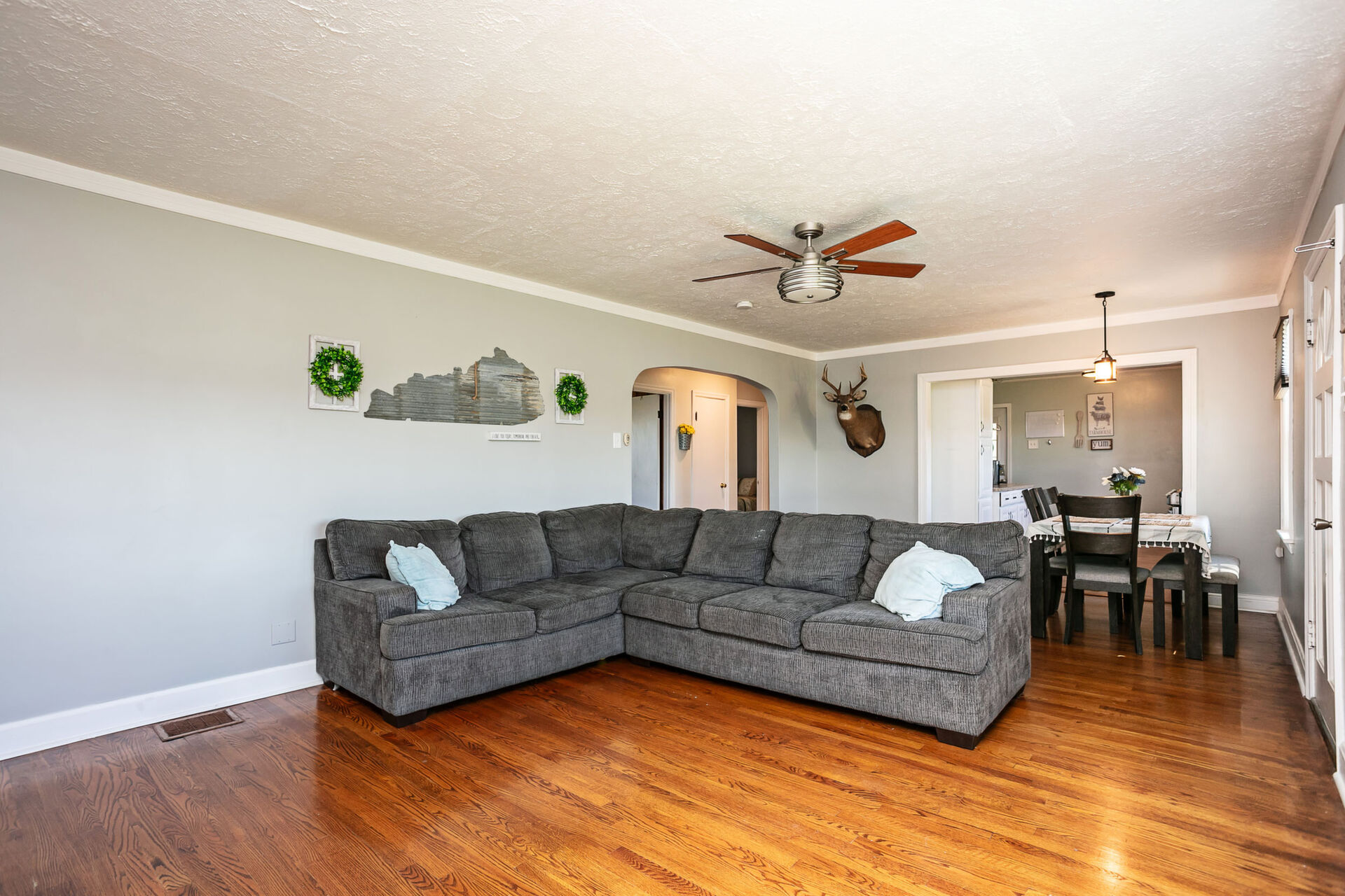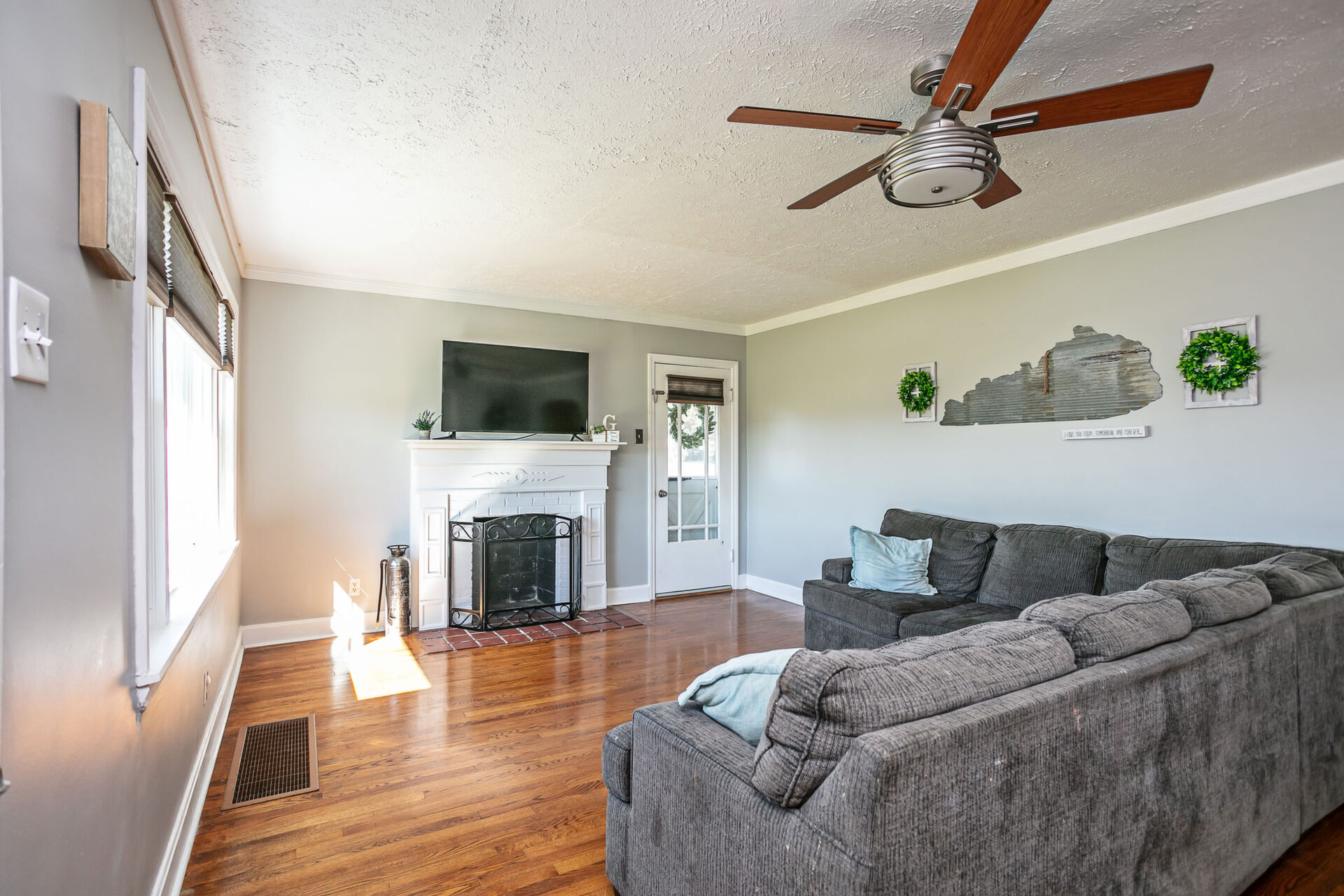 Welcome home to this adorable brick ranch conveniently located in the city limits close to all the amenities of downtown Lebanon. The tour begins in the cozy living room accentuated by the decorative fireplace and robust crown molding while the beautiful stationary window filters in soothing natural light that warms the classic hardwood floor… Plus room leftover for a quaint dining area. Flowing from the living room is a charming galley kitchen to offer a good amount of counter space that’s topped with a fashionable laminate and pairing beautifully with the backsplash. The kitchen is also souped-up with an assortment of elegant cabinetry and sleek stainless-steel appliances. Between the kitchen and living room is a grand archway offering a magnificent display of yesteryear charm and leading you into the hallway that features 3 bedrooms including a spacious primary. Accompanying these bedrooms is a stylish bathroom furnished with a cute vanity, neatly tiled floor, and gorgeously tiled tub/shower. The tour continues to the unfinished basement offering storage space and shelter plus potential for an entertainment/recreation area. Outside you will love the wrap-around driveway making for easy in and out access while the attached carport extends out into a covered patio giving you a great spot to host and entertain. Speaking of which… there is an additional side patio which is an adorable area that could be your personal spot to relax and unwind. As an added bonus… the home also comes with an 8’ X 12’ storage shed perfect for storing all the yard tools. Priced at an affordable $179,900… call TREY ABELL now as this one won’t last long!