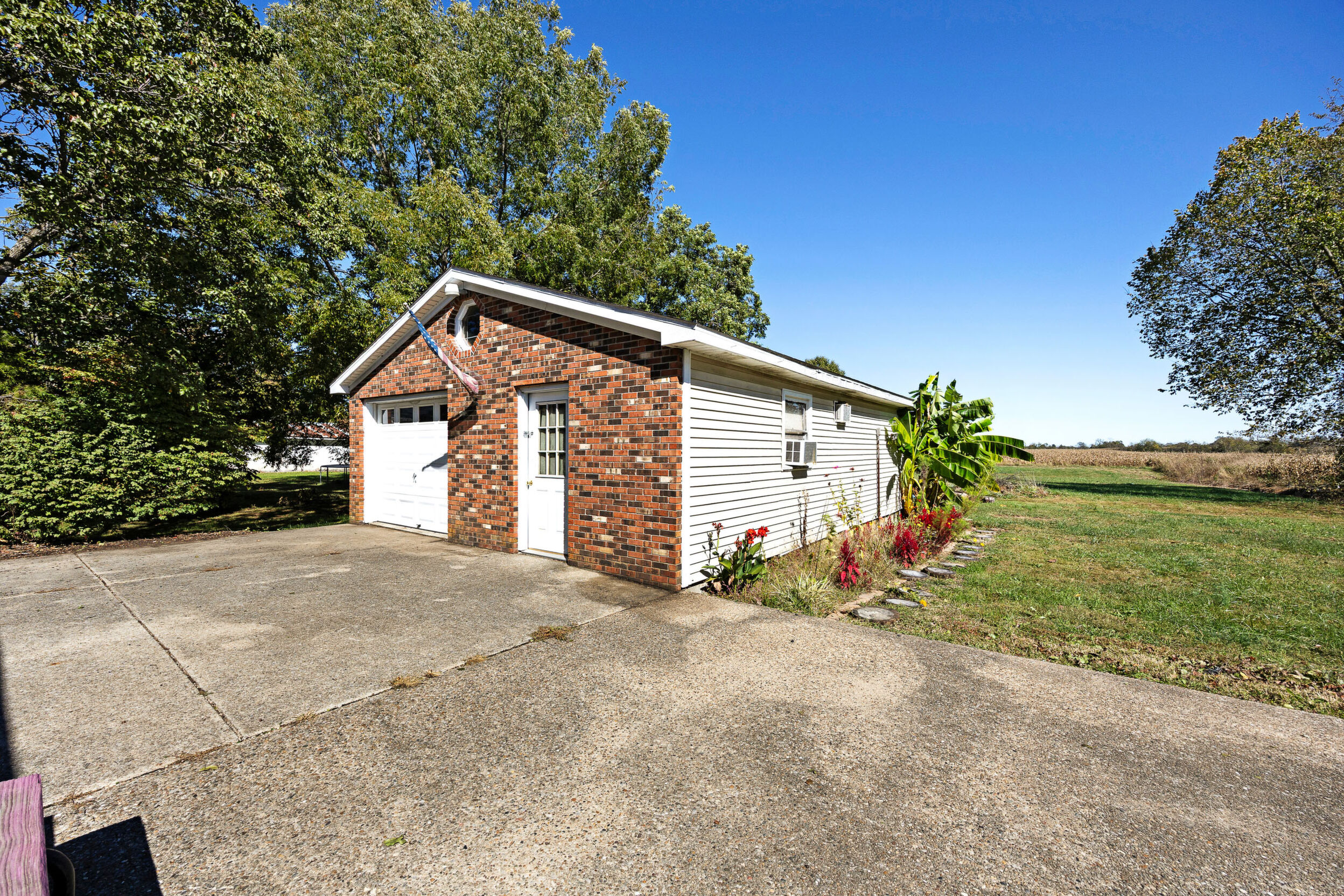 Conveniently located along KY-49 (less than a mile from West Marion Elementary School) and nestled on a spacious lot is where you will find this adorable place boasting style and charm to make a house you will be proud to call home! Come on in to be welcomed into a cozy living room brightened by a duo of sun-enticing windows that also warm up the splendid luxury vinyl plank floor while the soothing nautical vibe adds a relaxing touch. Flowing from the living room is an open kitchen souped-up with a lovely assortment of hearty cabinetry, stainless-steel appliances, and a generous amount of counter space. (Note: the barrel island/table does not stay) The kitchen also provides wonderful seating options as you have your choice between gathering around the sizable dining area or huddling up around the bar that is also a passthrough window to combine the living room and kitchen seamlessly. The first-floor features 2 bedrooms including a spacious primary sporting soft carpet and furnished with his/her closets. And accompanying these bedrooms is a full bath highlighted by a stylish European height vanity, a custom paint job, and a nice tub/shower combo. Making our way upstairs is where you will find 2 more generously-sized bedrooms laid with a beautiful woodgrain floor and serviced by a nifty/cute ½ bath. Not to mention… the well thought out attic space that allows for easy access to the home’s electrical and maintenance components. The tour continues down to the unfinished walk-out basement that is teeming with potential as this large area offers loads of storage space, rec areas that would be great for things like a home gym, and shelter during inclement weather. Outside… the home has new river rock landscaping paired with freshly manicured bonsai bushes to enhance its charming curb appeal. Then when you just want to sit back and relax… claim your spot under the covered patio to unwind and watch the world go by… plus you have another patio to the rear of the home offering tranquil views of the peaceful backyard and gorgeous farmland. As an added bonus… the home also comes with a 24’ X 32’ detached garage that is perfect for a mancave, storage, and those tinkering jobs. This place has it all and call CHASE LANCASTER to get it all today!